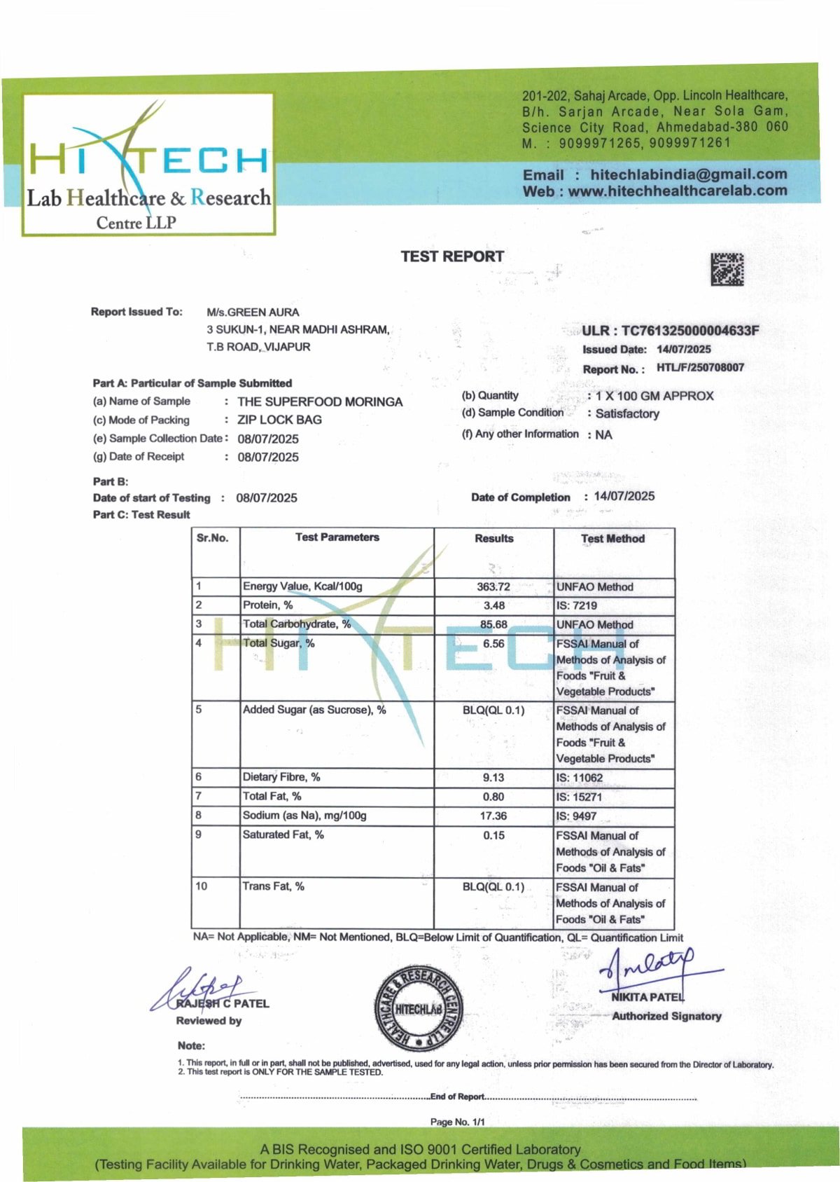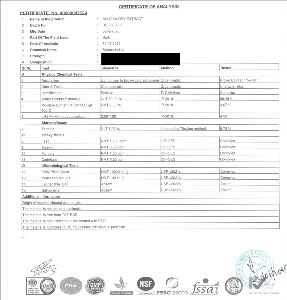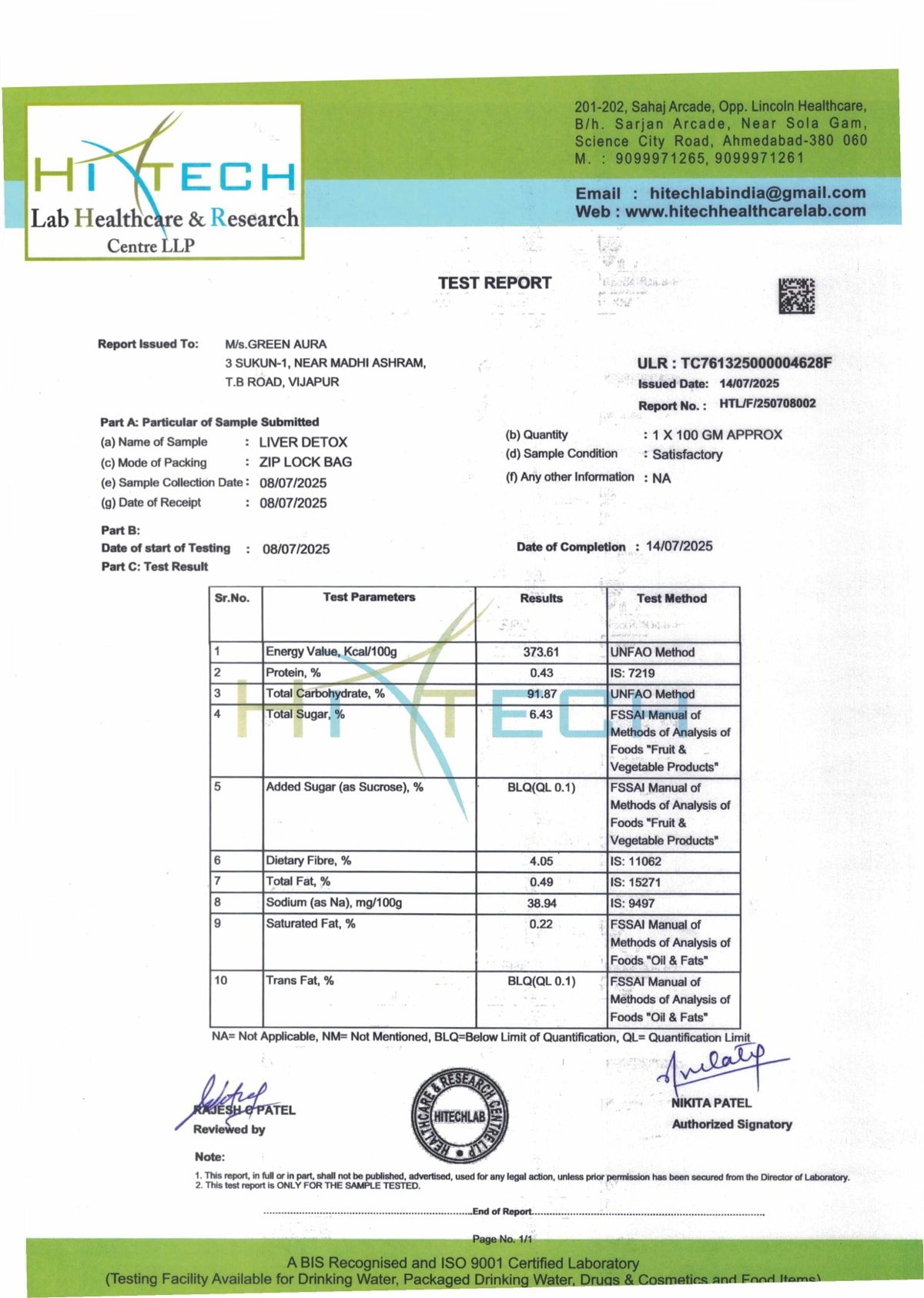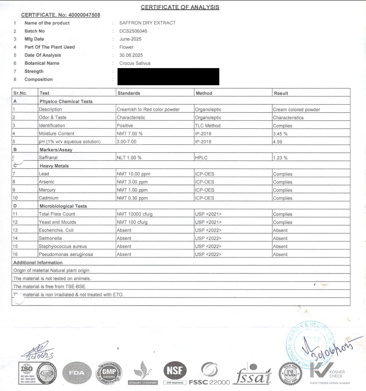 FSSAI (Food Safety and Standards Authority of India) regulates all nutraceuticals and dietary supplements in India. Every Green Aura finished product is registered and approved by FSSAI, ensuring it’s safe and compliant for Indian consumers.