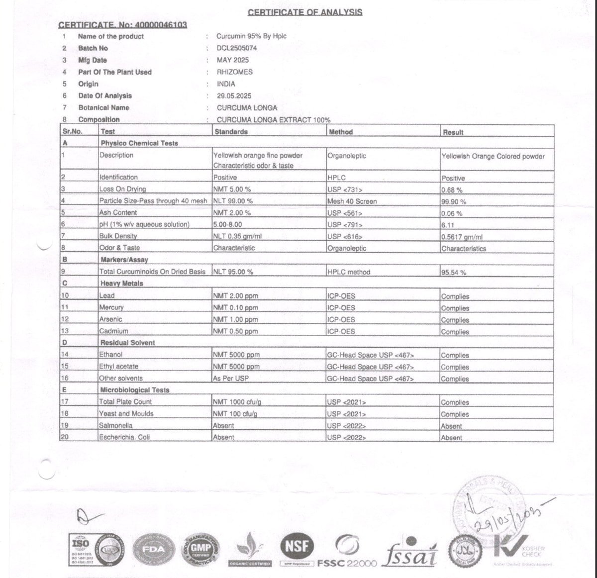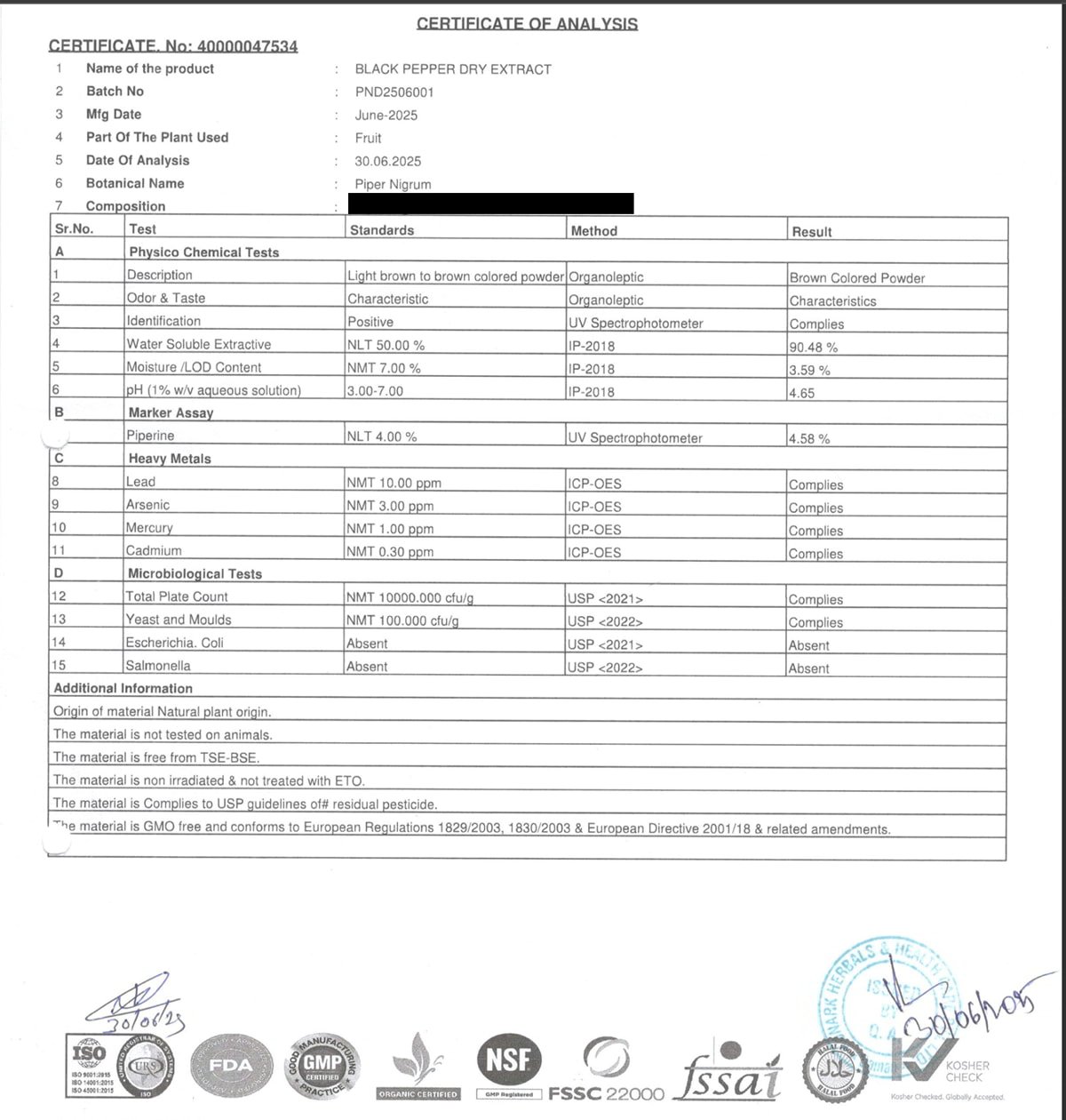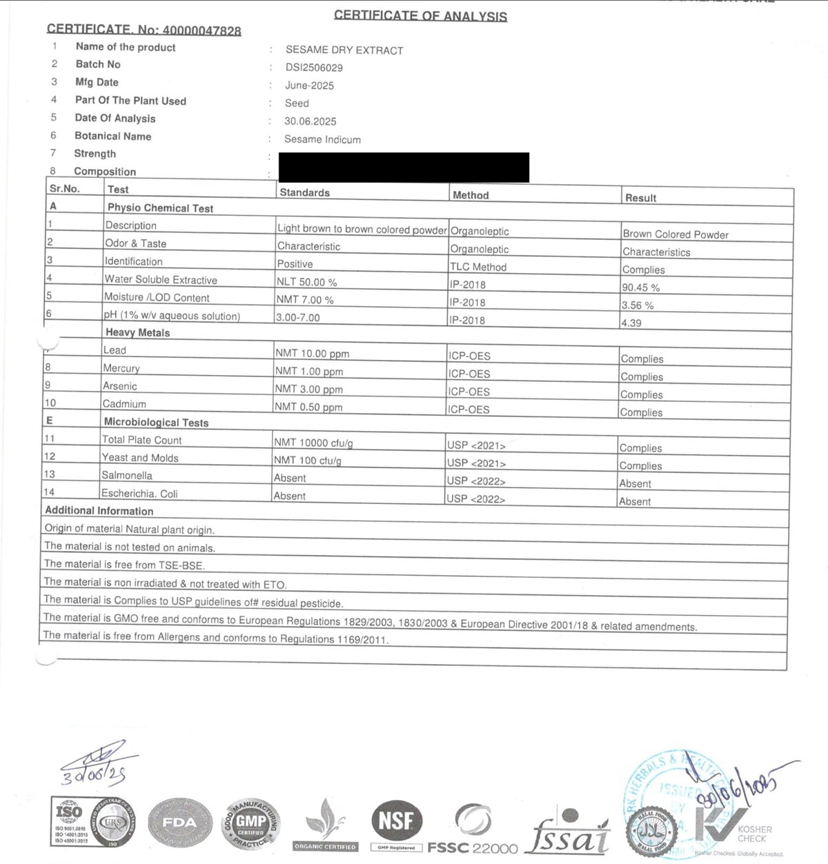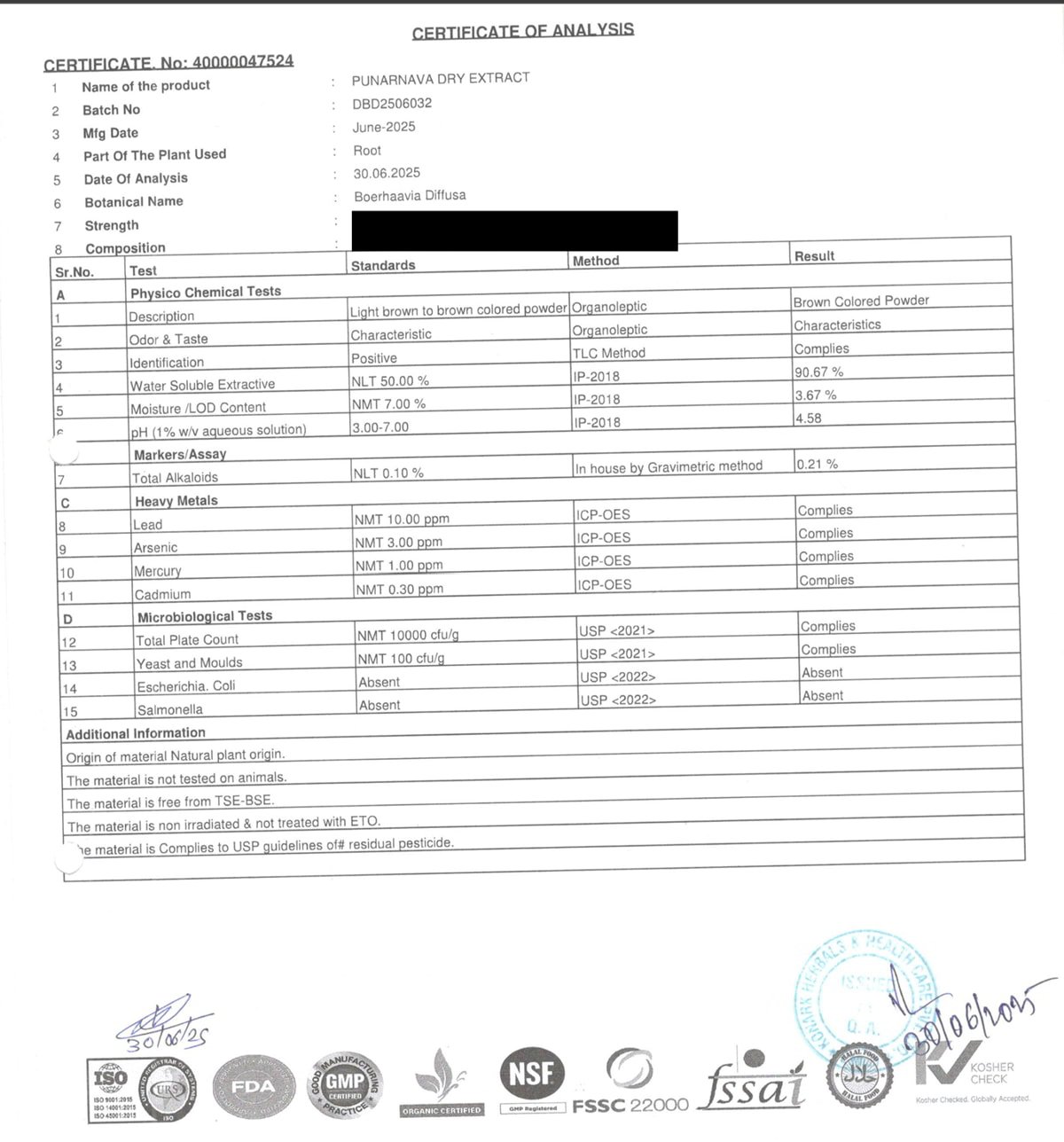 Each raw material is tested for heavy metals, microbial load, pesticides, and authenticity of active ingredients, maintaining uncompromising purity.
