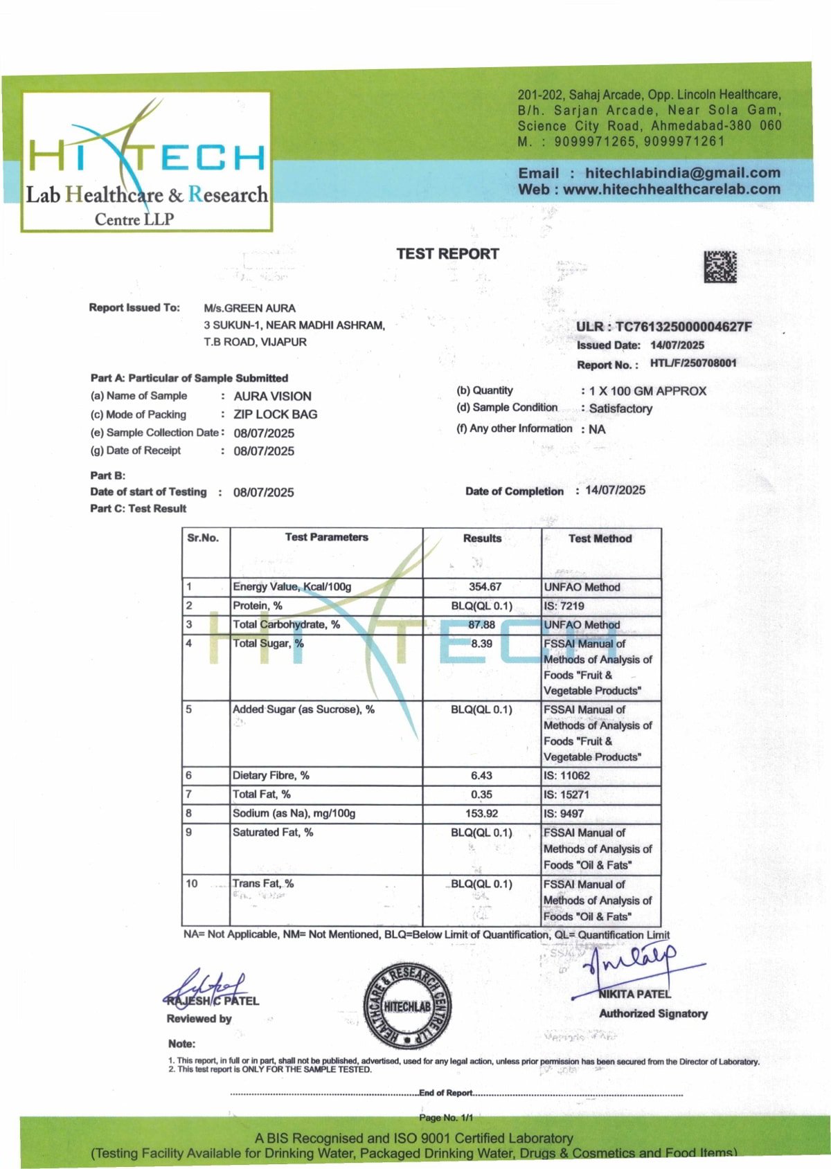 At Green Aura, we believe that wellness begins with trust. Every raw material we source and every finished product we create passes through world-class laboratories accredited with globally recognized standards. This ensures purity, safety, and efficacy you can rely on.