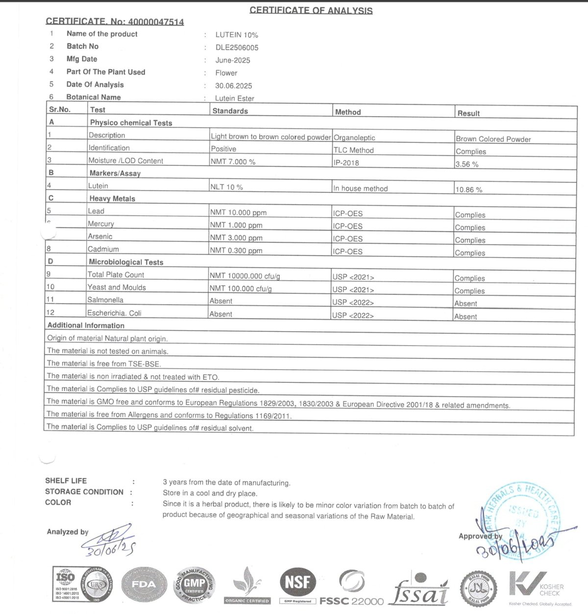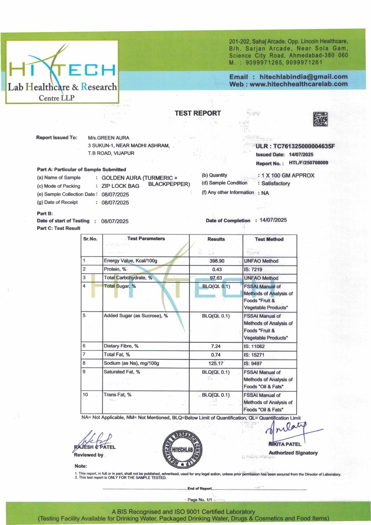 Green Aura emphasizes purity, safety, and stringent lab testing for all raw materials and finished products. While we do not carry an Organic certification, our focus is on internationally accredited testing standards that ensure every ingredient meets the highest benchmarks of quality and safety.
