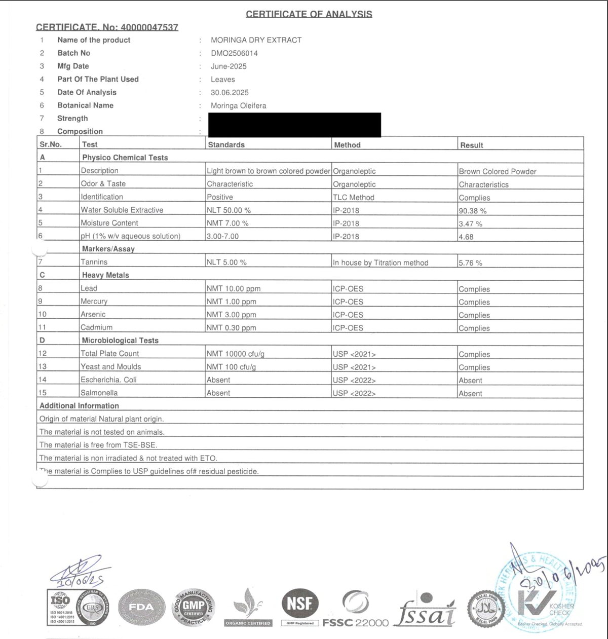 Every ingredient used in Green Aura formulations is tested in Kosher Check Certified laboratories. This means that our raw materials are validated in facilities that follow globally trusted Kosher compliance protocols, ensuring an additional layer of reliability and acceptance across international markets.